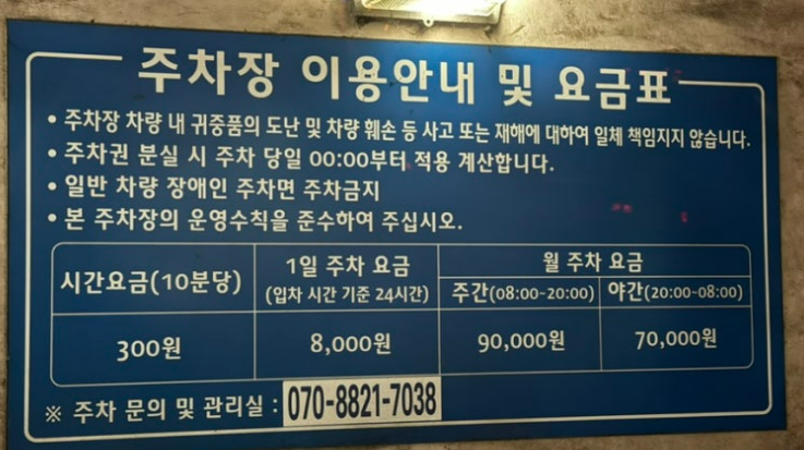 ✅ 1일 주차요금 : 8,000원(입차시간 기준 24시간 이내)