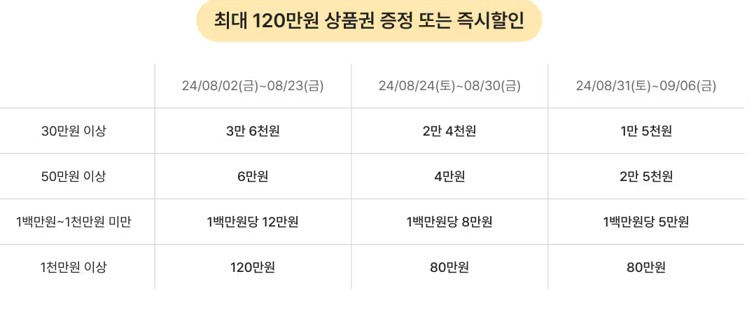 | 추석 명절선물세트 최대50% 할인 마트별, 백화점별, 카드사별 사전예약 기간 (1) | 2024.08.13 |