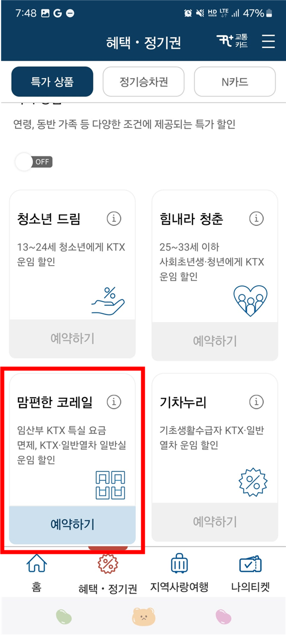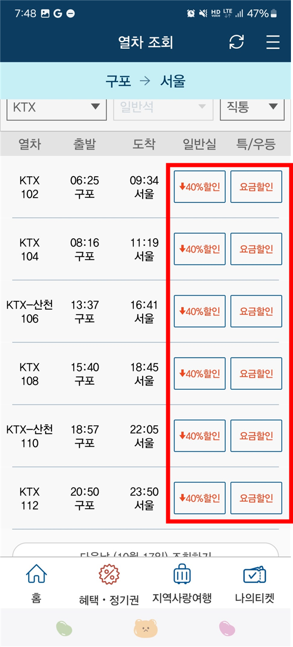 KTX 특실은 일반 요금 적용)